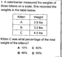 40% The answer is c because 4.0 as a fraction is 2/5 and 2/5 as a percentage is 40%. This is the answer I got so hope it's right and hope it helps!