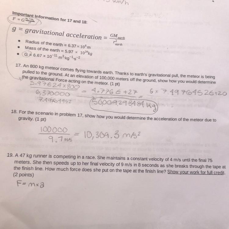 17. Use the given formula for force. Fill in the masses and radius. The distance from the earth is in addition to the radius of the earth.