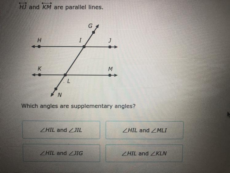 Answer: angles HIL and MLI are supplementary angles.