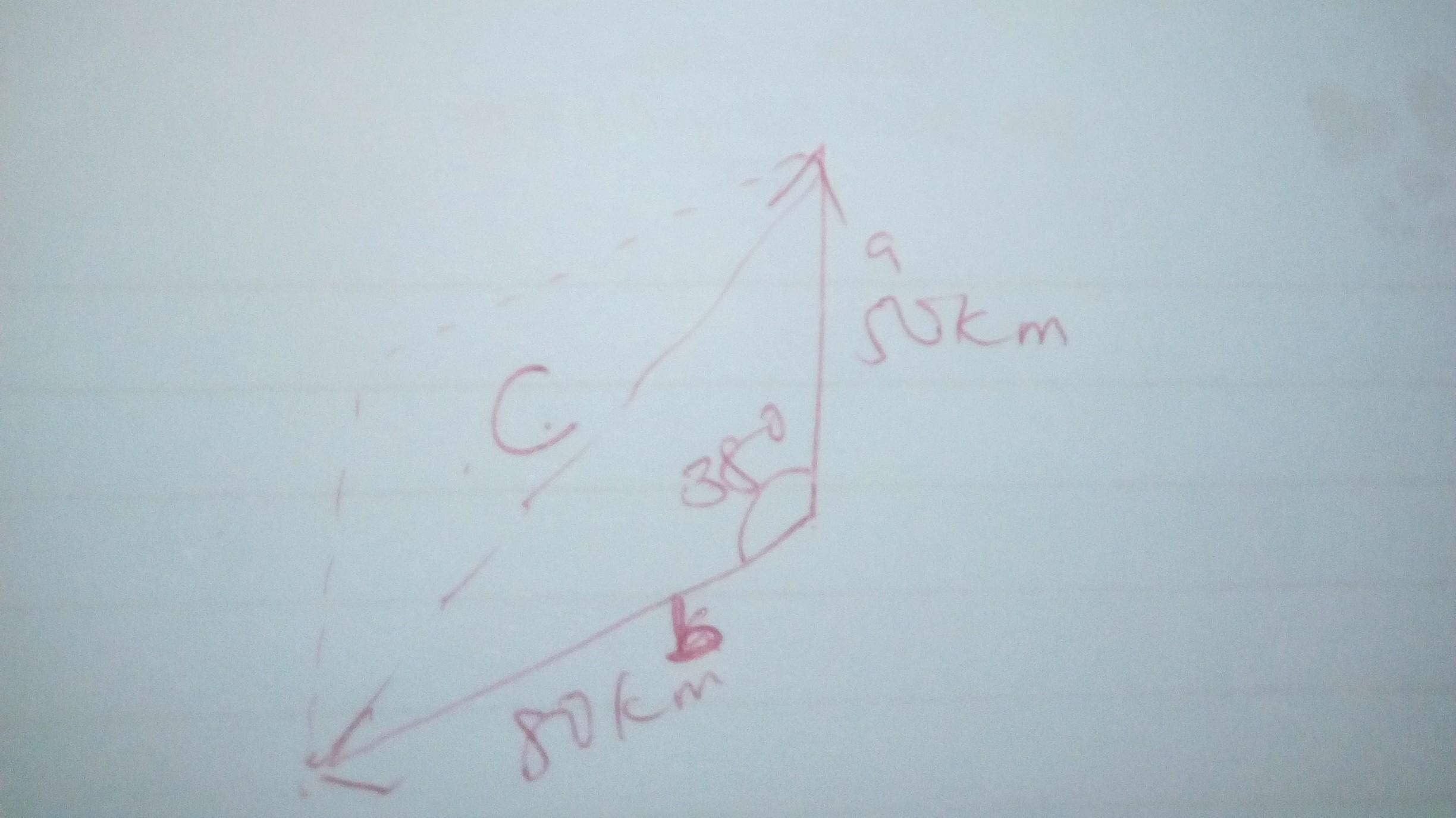 c²=50²+80²-2(50)(80)Cos 38°