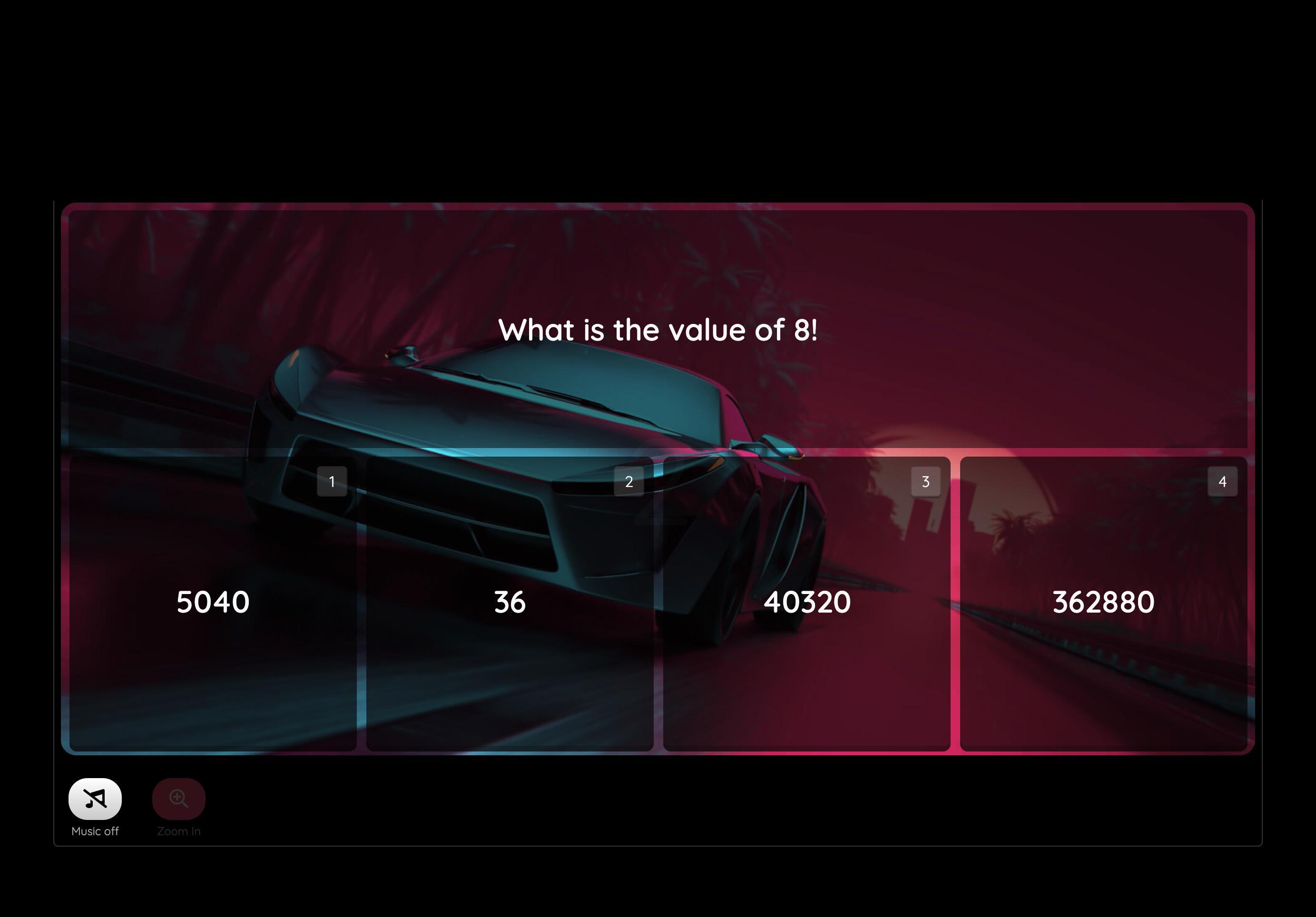 8! is equal to 1 * 2 * 3 * 4 * 5 * 6 * 7 * 8 , which equal 40320