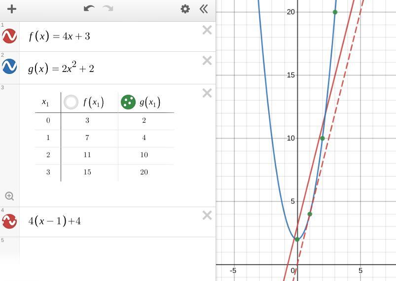 b) The interval [2, 3] also has a width of 1, so the rate of change of g(x) on that interval is g(3) -g(2) = 20 -10 = 10. This value is greater than 4, so ...