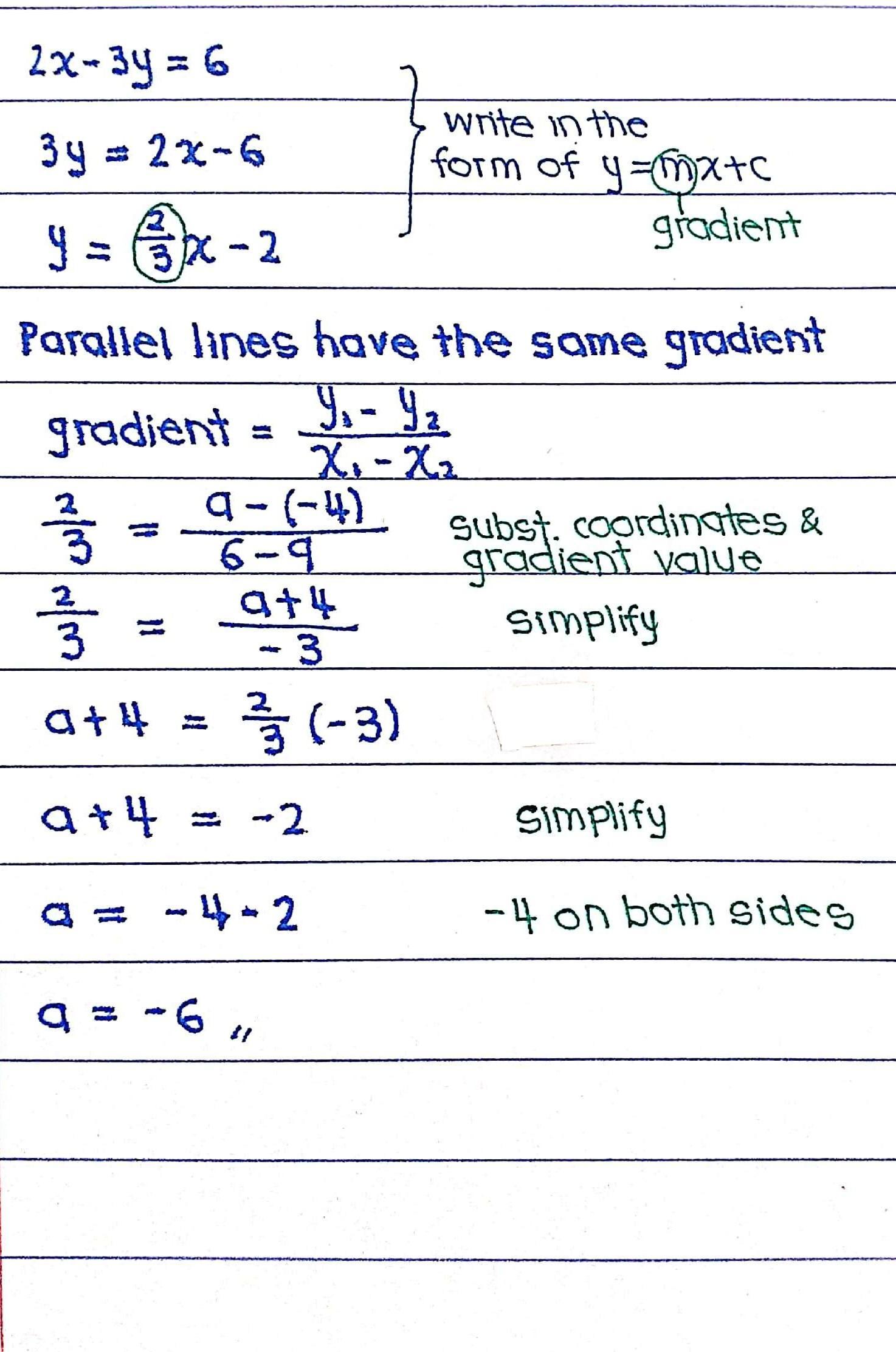 <em>y= 2/3x -2</em><em> </em><em> </em><em> </em><em> </em><em> </em><em> </em>(÷3 throughout)