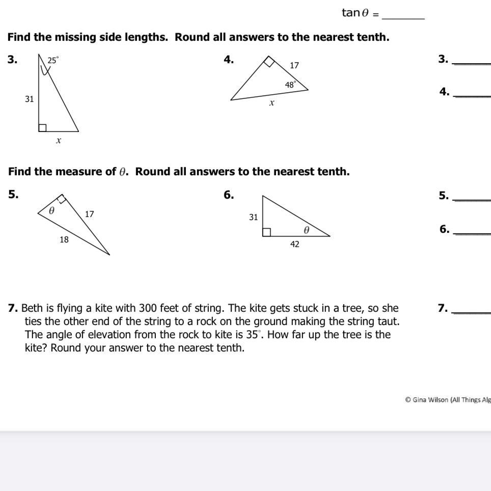 7.) Your best bet is to draw a picture. For my case, Im going to imagine it. The angle is 35 degrees and the hypotenuse is 300 feet. The question is asking for the opposite of the angle. This calls for sine.