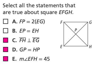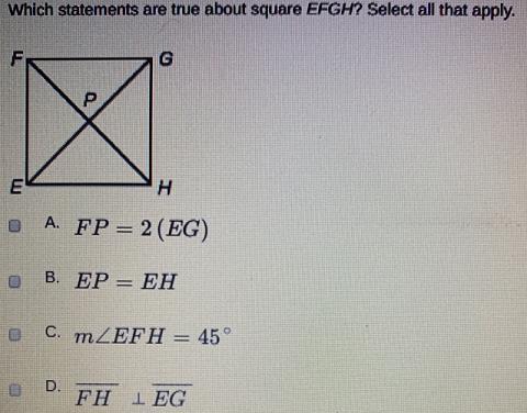 The sides of the square are EF, FG, GH and HE while the diagonals are: EG and FH