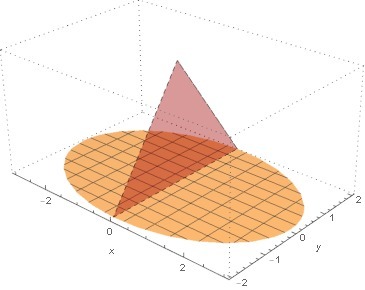 defines an ellipse centered at (0,0) with semi-major axis length 3 and semi-minor axis length 2. The semi-major axis lies on the x-axis. So if cross sections are taken perpendicular to the x-axis, any such triangular section will have a base that is determined by the vertical distance between the lower and upper halves of the ellipse. That is, any cross section taken at x=x_0 will have a base of length