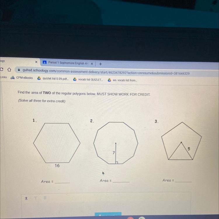 <em>the area of a hexagon is Area = (3√3 s2)/ 2 where s is the length of a side of the regular hexagon </em>