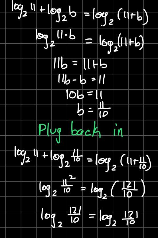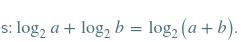 A student mistakenly writes the following in his notes: log2a+log2b=log2(a+b) . However, after substituting the values for a and