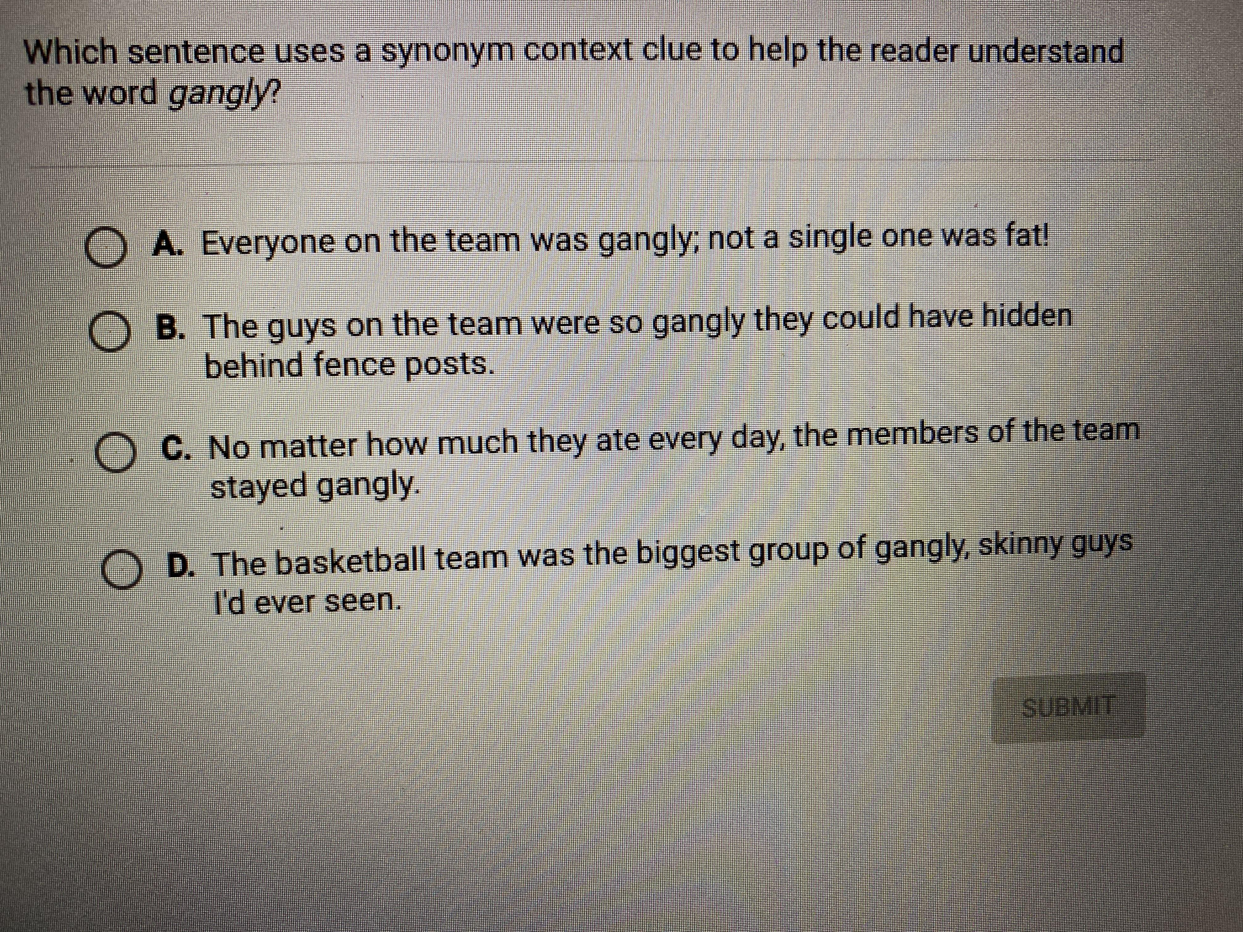 The answer is C. Whenever we come to grass that can be mowed, Mr. Frink has the men cut a good supply of it with the scynthe...