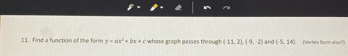 We know that it passes through the three points: (-11, 2); (-9, -2); and (-5,14).
