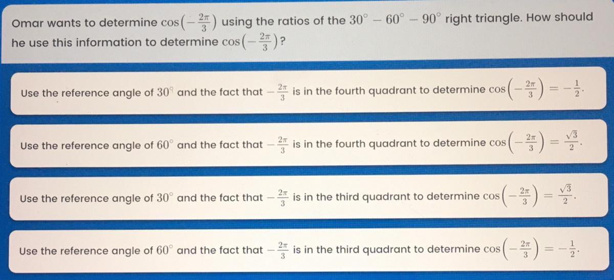 - cos(-2pi/3) is in third quadrant.