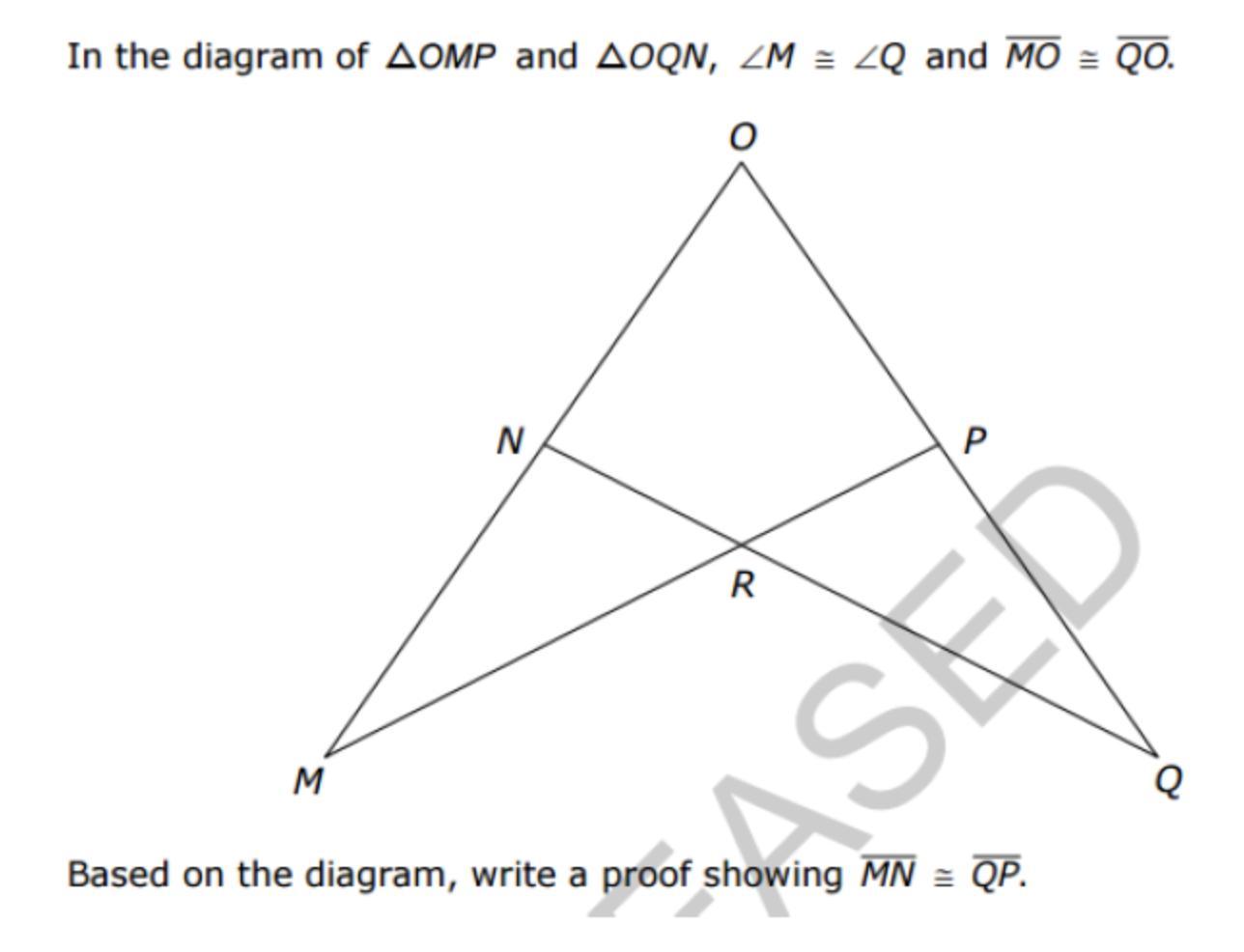 angle MOP= angle QON (both the triangles meet at angle O so the angles are equal)