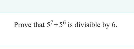 FIRST CORRECT ANSWER WILL GET BRAINLIEST!!! PLS helppp prove that 5^7+5^6 is divisible by 6