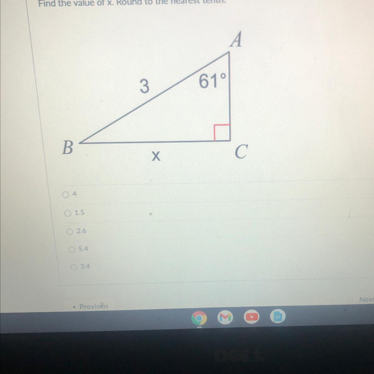 side FE = 5 is the side opposite the reference angle (since its the leg furthest away from angle D)