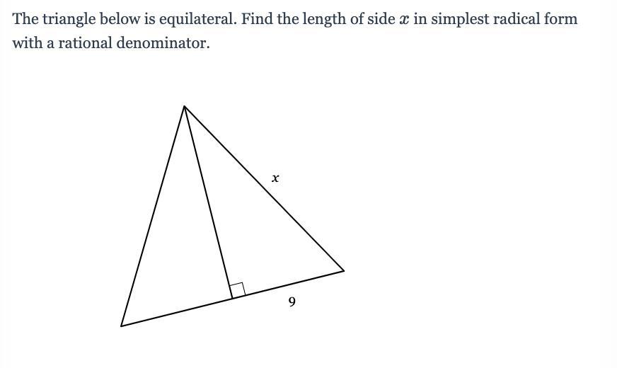 As the triangle is equilateral, every side is the same measure, so x = 18