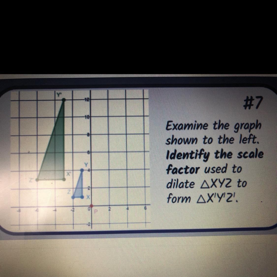 Note each coordinate of the dilated triangle is three times the coordinates of the original triangle, thus the scale factor is 3
