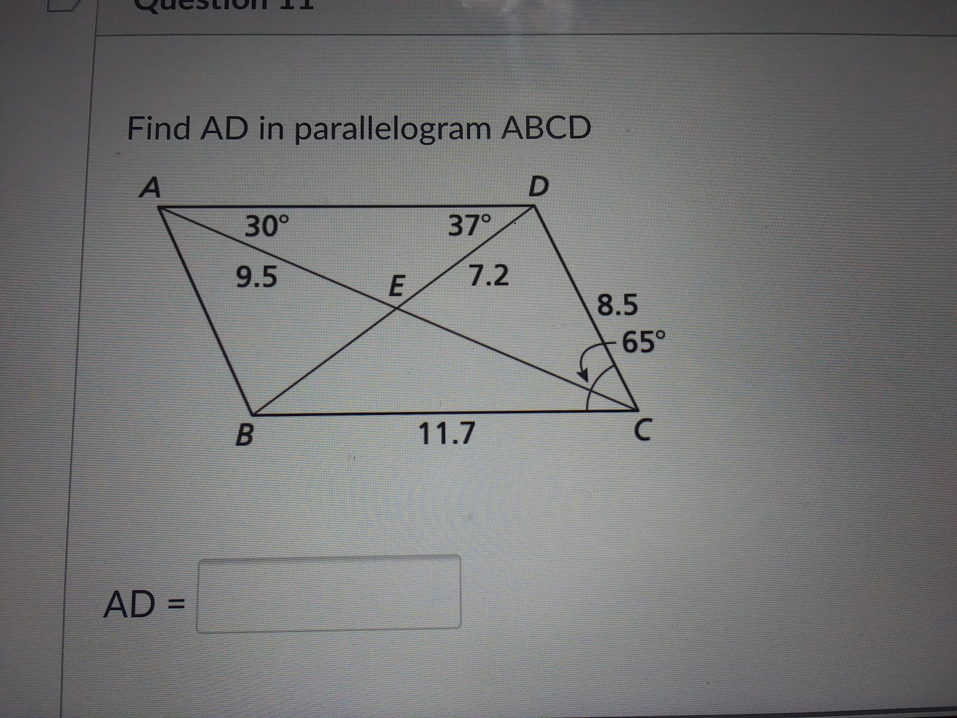 A quadrilateral, has 4 sides and its internal angles sum, add up to 360, now... you have 3 angles give.. .but we don't have C