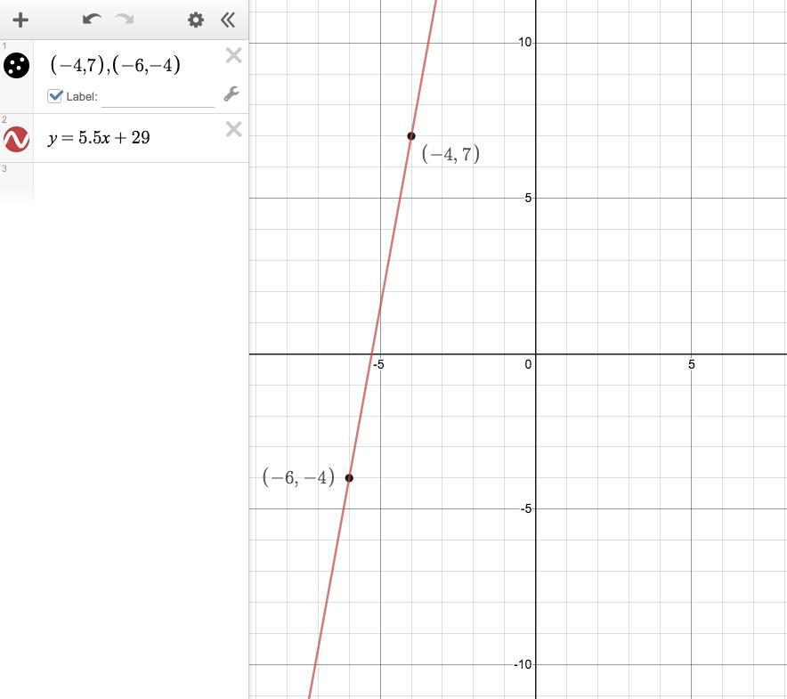 m = (-4 -7)/(-6 -(-4)) = -11/-2 = 5.5