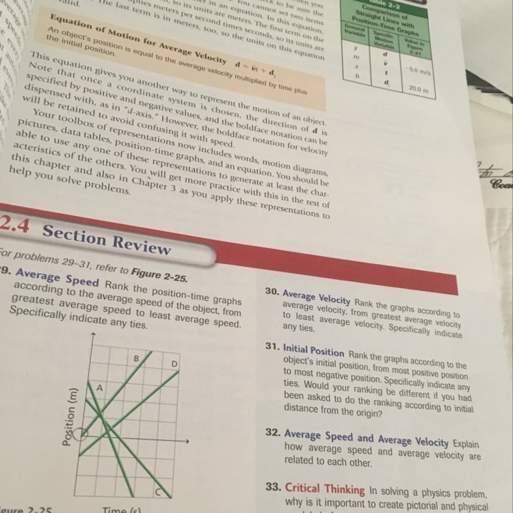 How do you rank graphs according to average velocity? I am currently stuck on problems 30 and 31