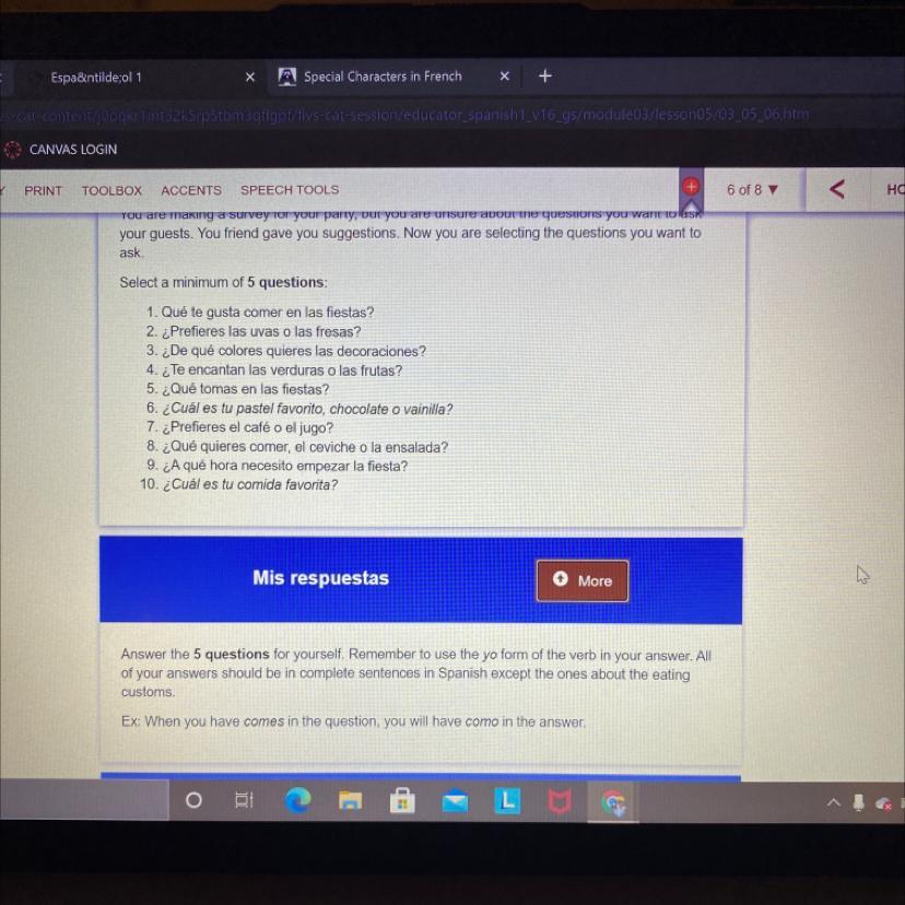 Explanation: 1) A mi me gusta comer pizza en las fiestas.