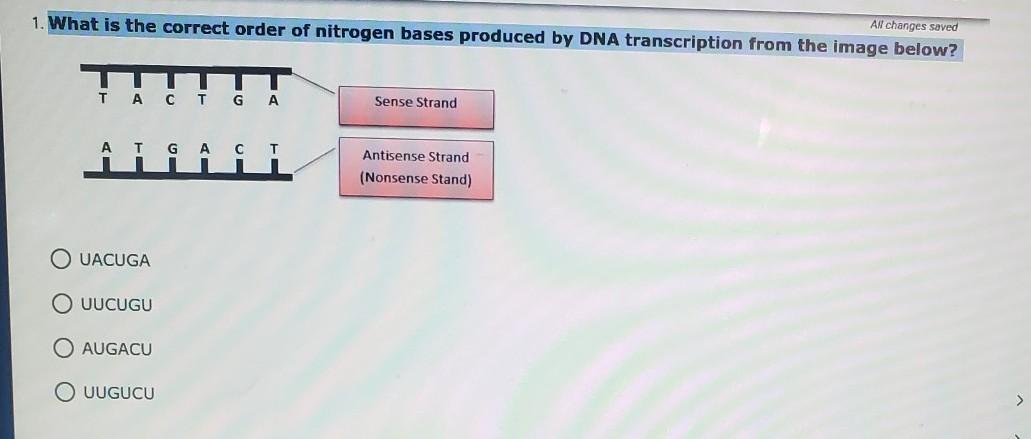 So whatever letter you have in the DNA strand, the complementary strand will have the complement to it. In this case, we have CTGGAC. The complement of C is G, for T it is A, and so on. Therefore, the correct complementary strand is GACCTG (the fourth option).