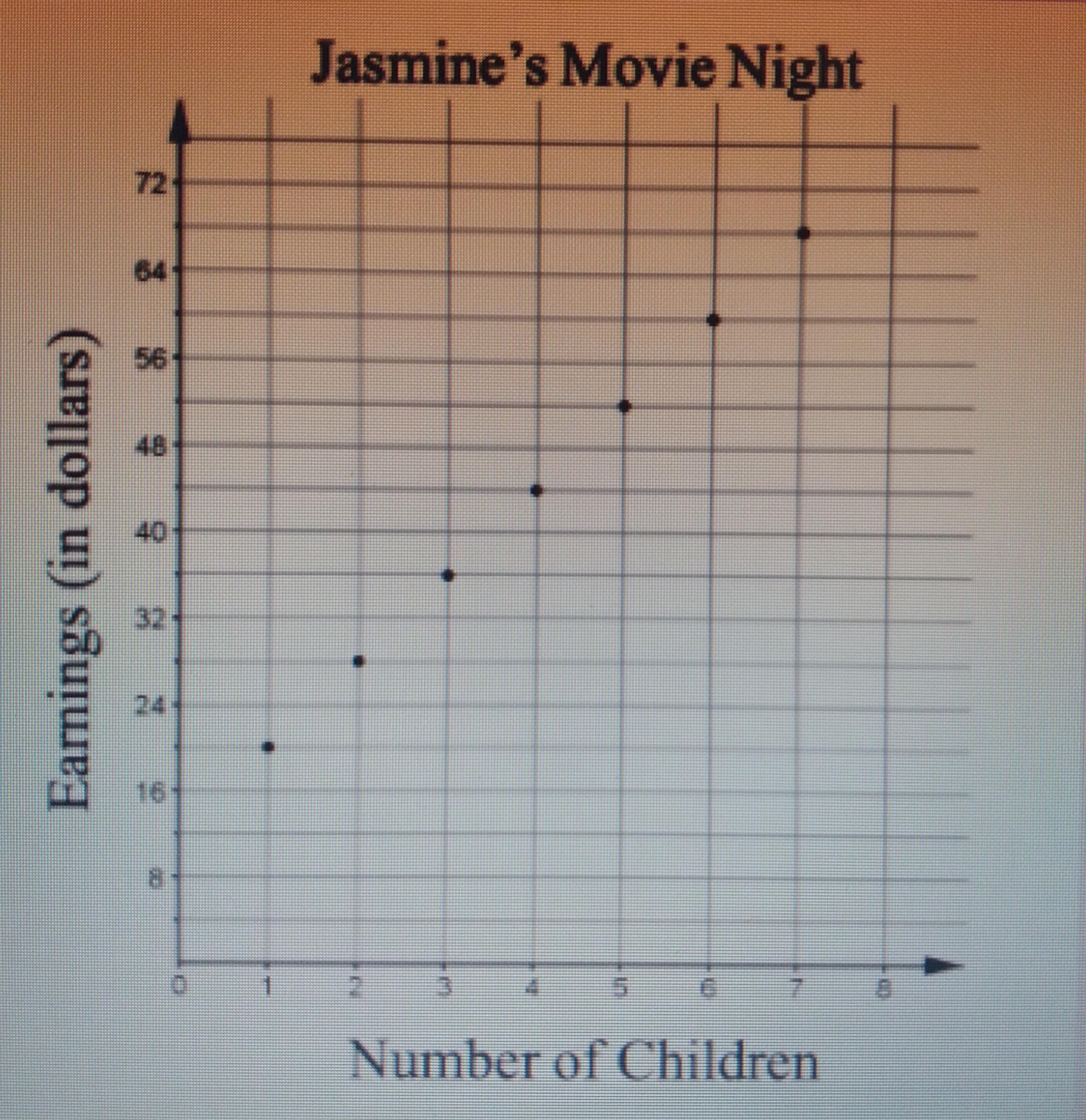y2-y1/x2 - x1, we have, 44 - 20/ 4 - 1 = 8 dollar per child