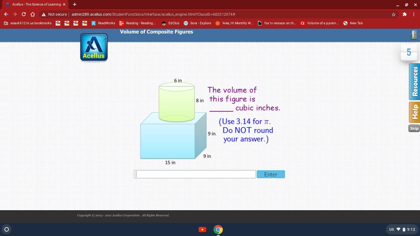 The diameter of cylinder is 6 in and the height of the cylinder is 8 in.