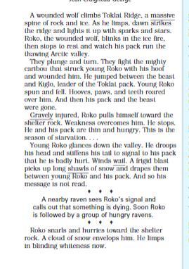 The story is about a fierce and bold wolf fighting for his life once he survives he shouts his victory to all.