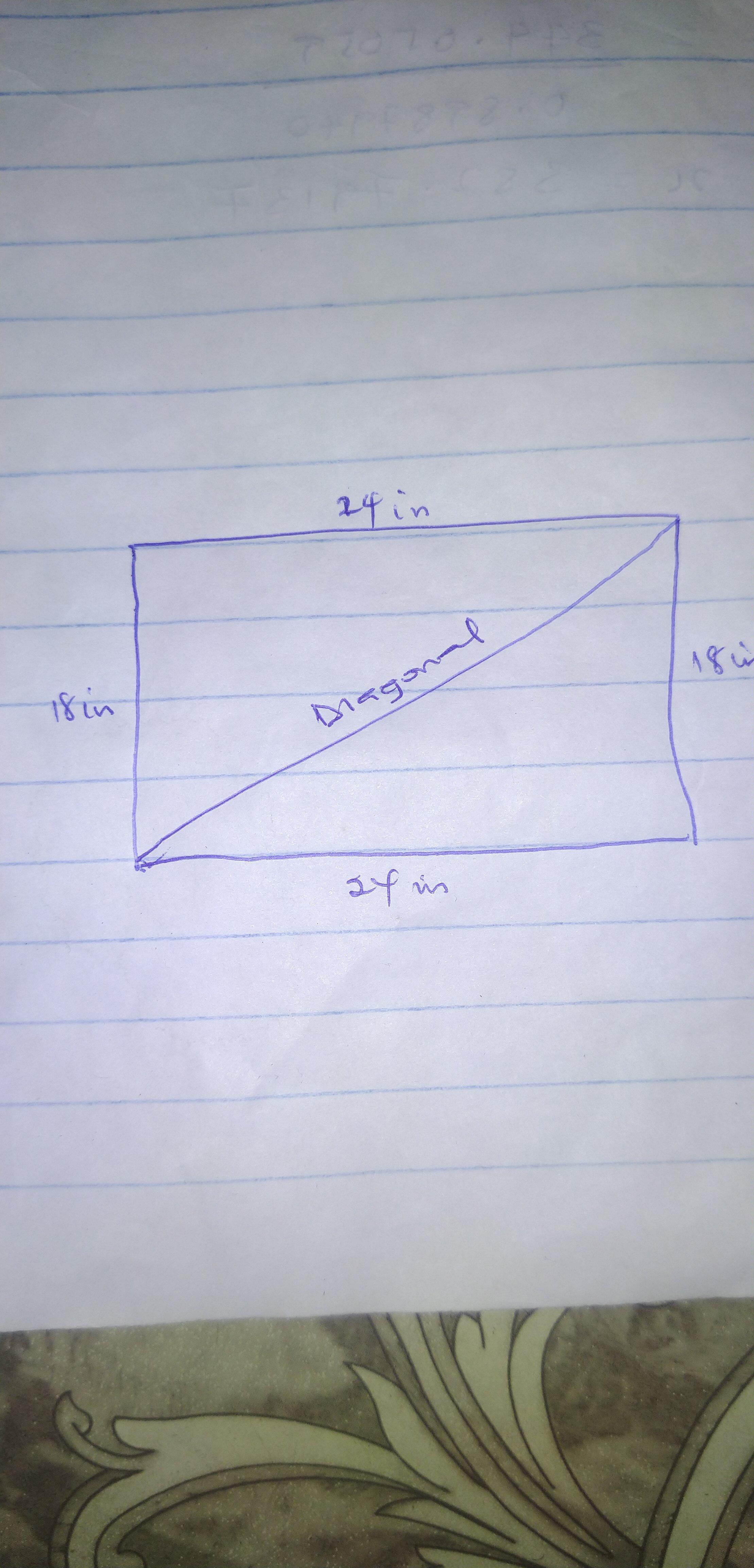 Length of diagonal = √(18^2) + (24^2)