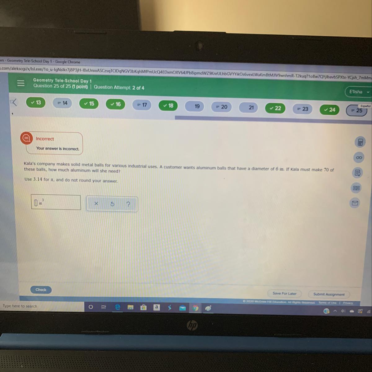 If 113.04 inch³ of aluminum is used for 1 ball, then we multiply 70 with this value to determine the aluminum needed for 70 such balls.