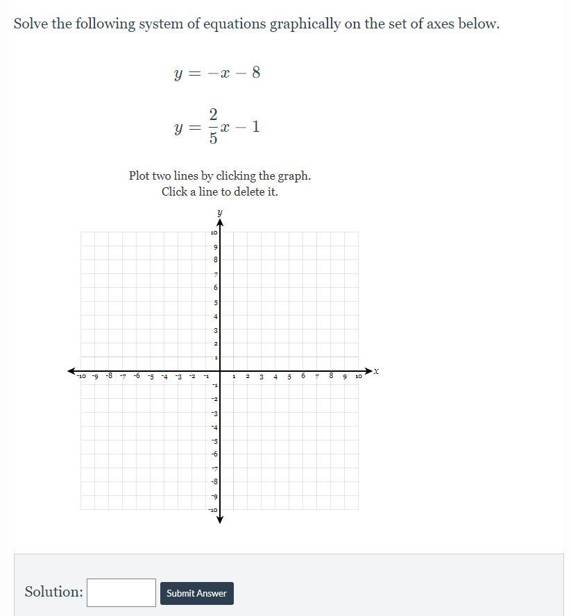 In the first equation, the slope is -1 and the y-intercept is -8. So, to graph you would start at (0, 8) and move up one unit and then left one unit to get the next point.