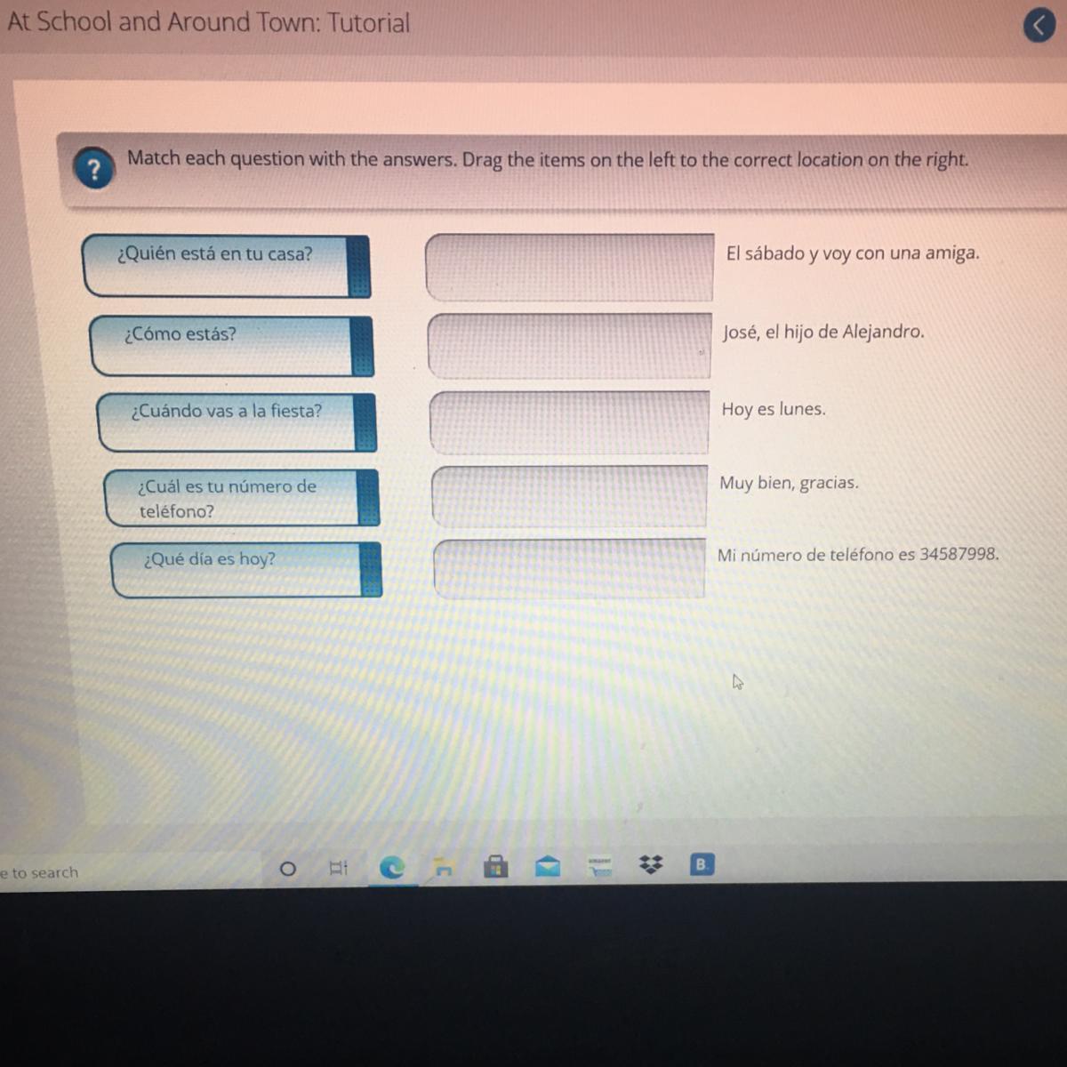 Match each question with the answers. Drag the items on the left to the correct location on the right.