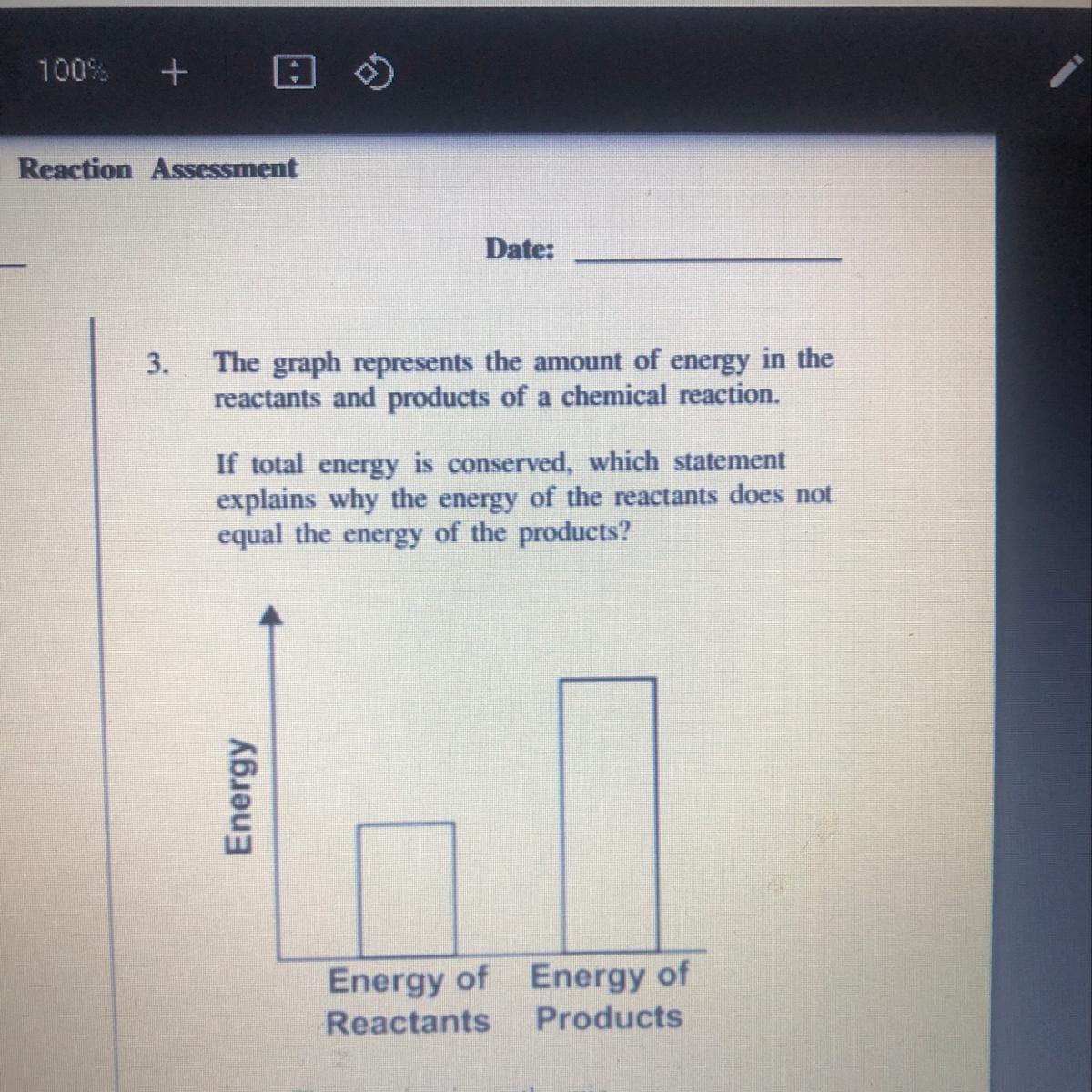 Answer: The correct answer is in an exothermic reaction the energy of the product is less than the energy of the reactants.