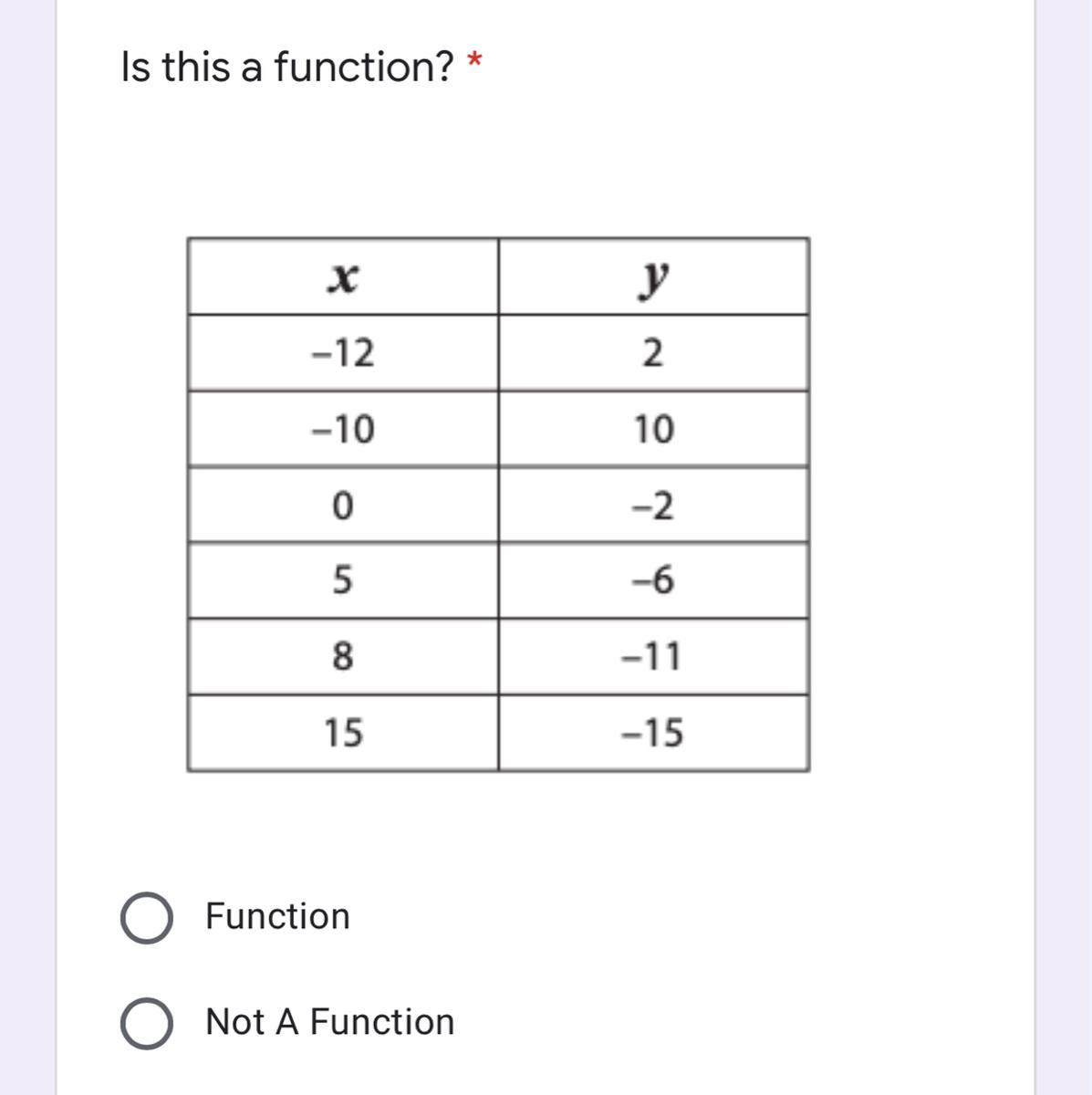 Given the function;