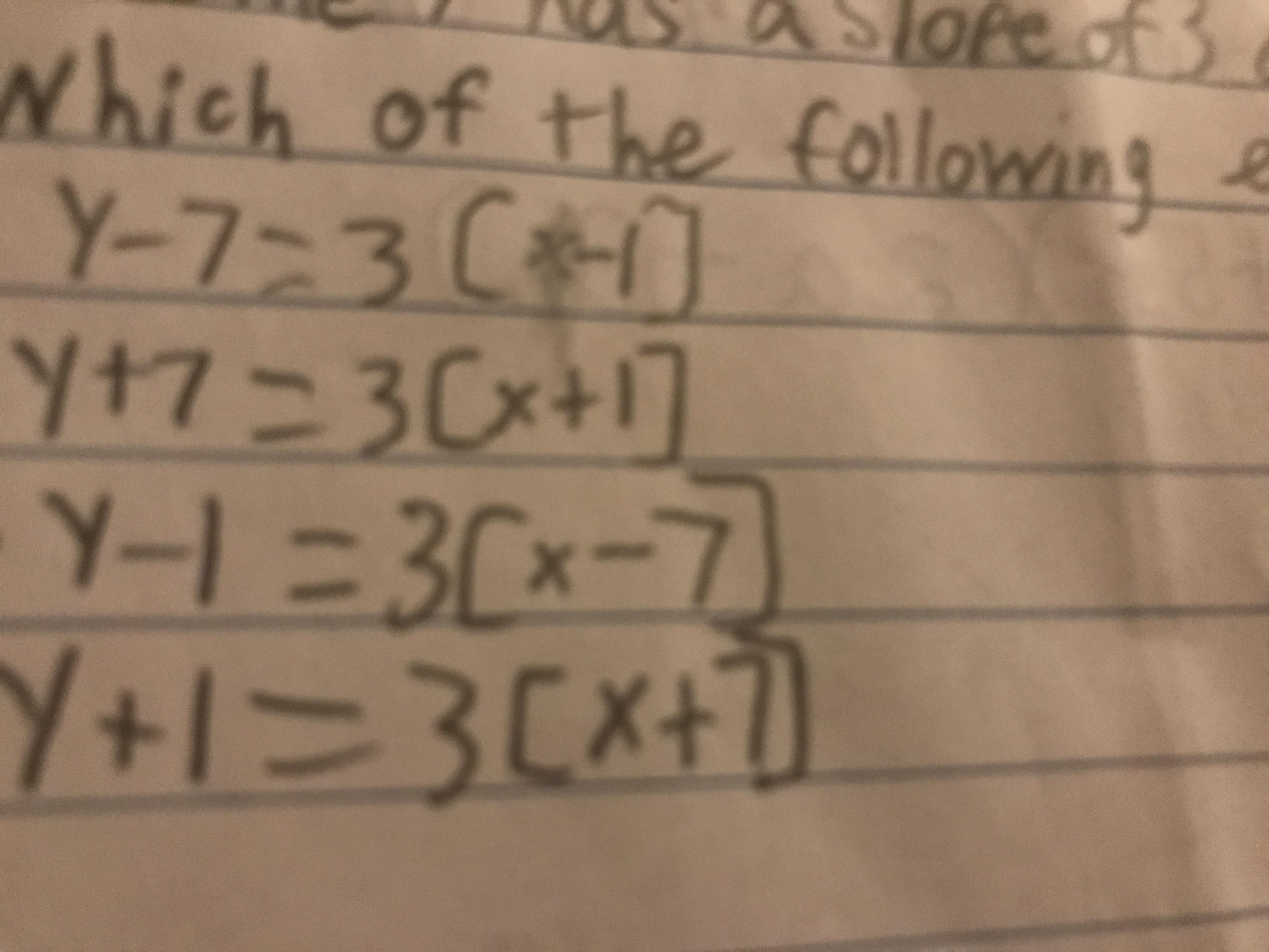 Line / has a slope of 3 and a y- intercept of 4 which of the equations represents line/