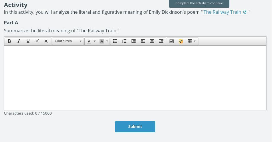 In the poem Emily Dickinson presents the Railway train in the metaphor of a mythical horse. The metaphor is appropriate, because it suggests the superhuman power of the train. ... The speaker appreciates the train's speed and power as it goes through valleys, stops for fuel, then "steps" around some mountains.