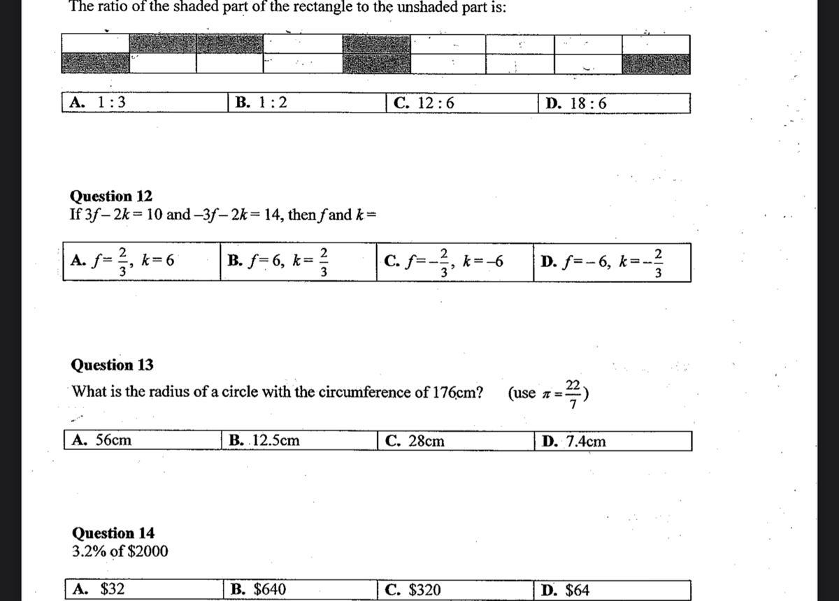 Now that we have f and k, we know that C is the correct answer.