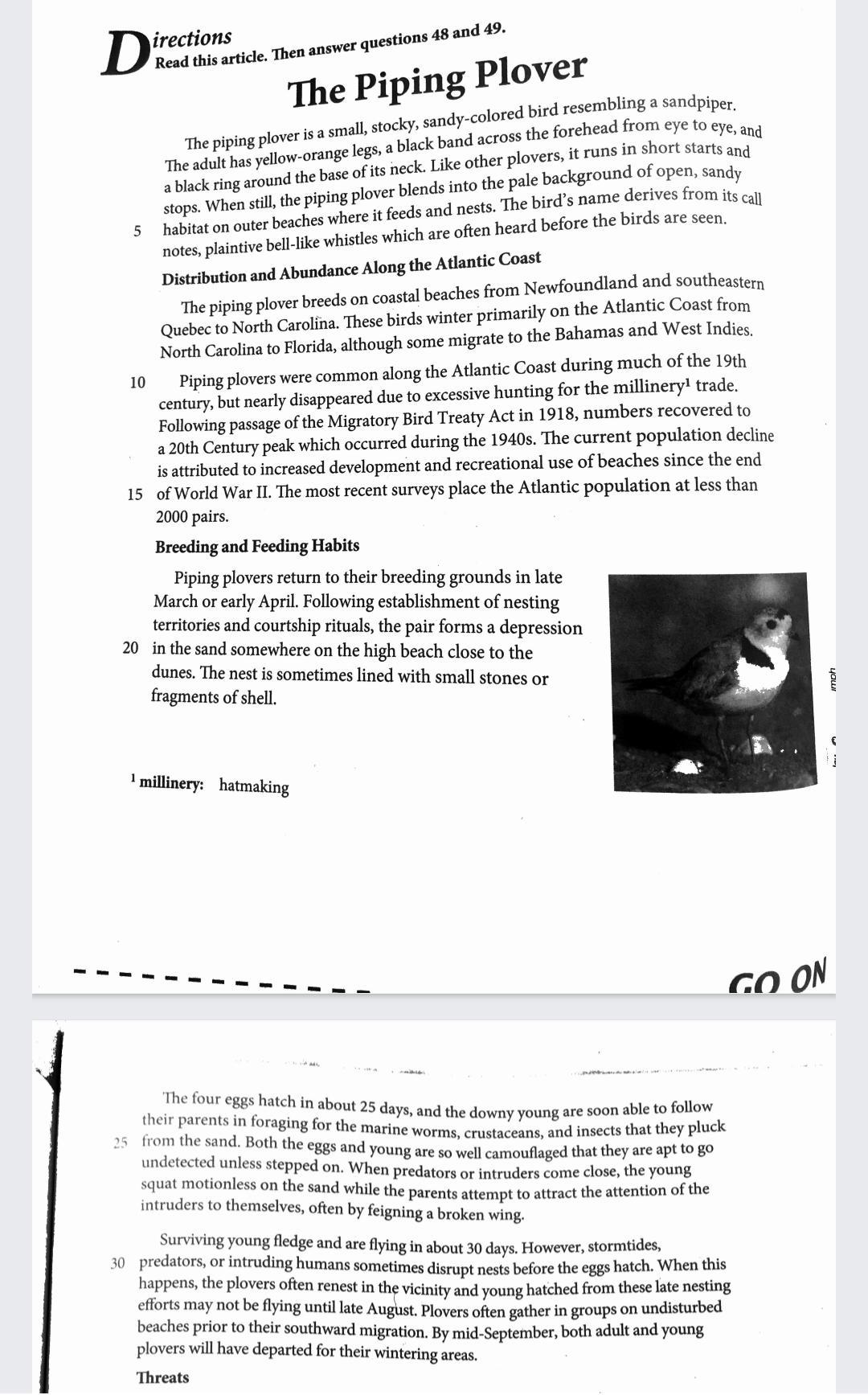 2. The section titled "THREATS" helps me to understand the decline of piping plovers by stating the factors that are causing the decline.