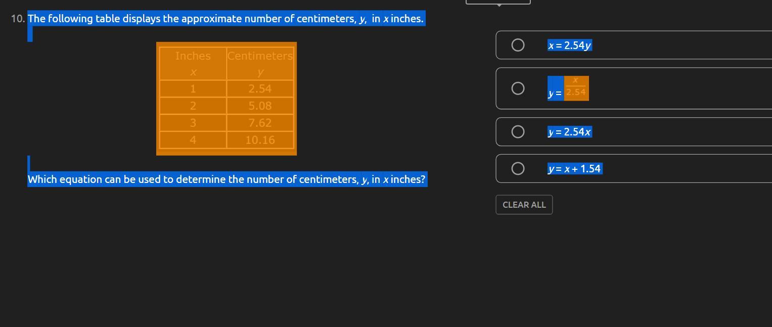 The answer it’s y=2.54x I just did the assignment