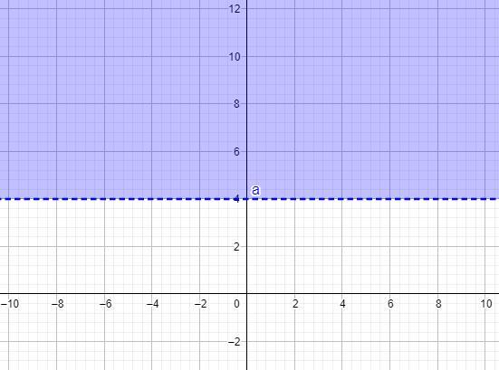 This represents that y can take all real numbers over 4 (not including the number four).