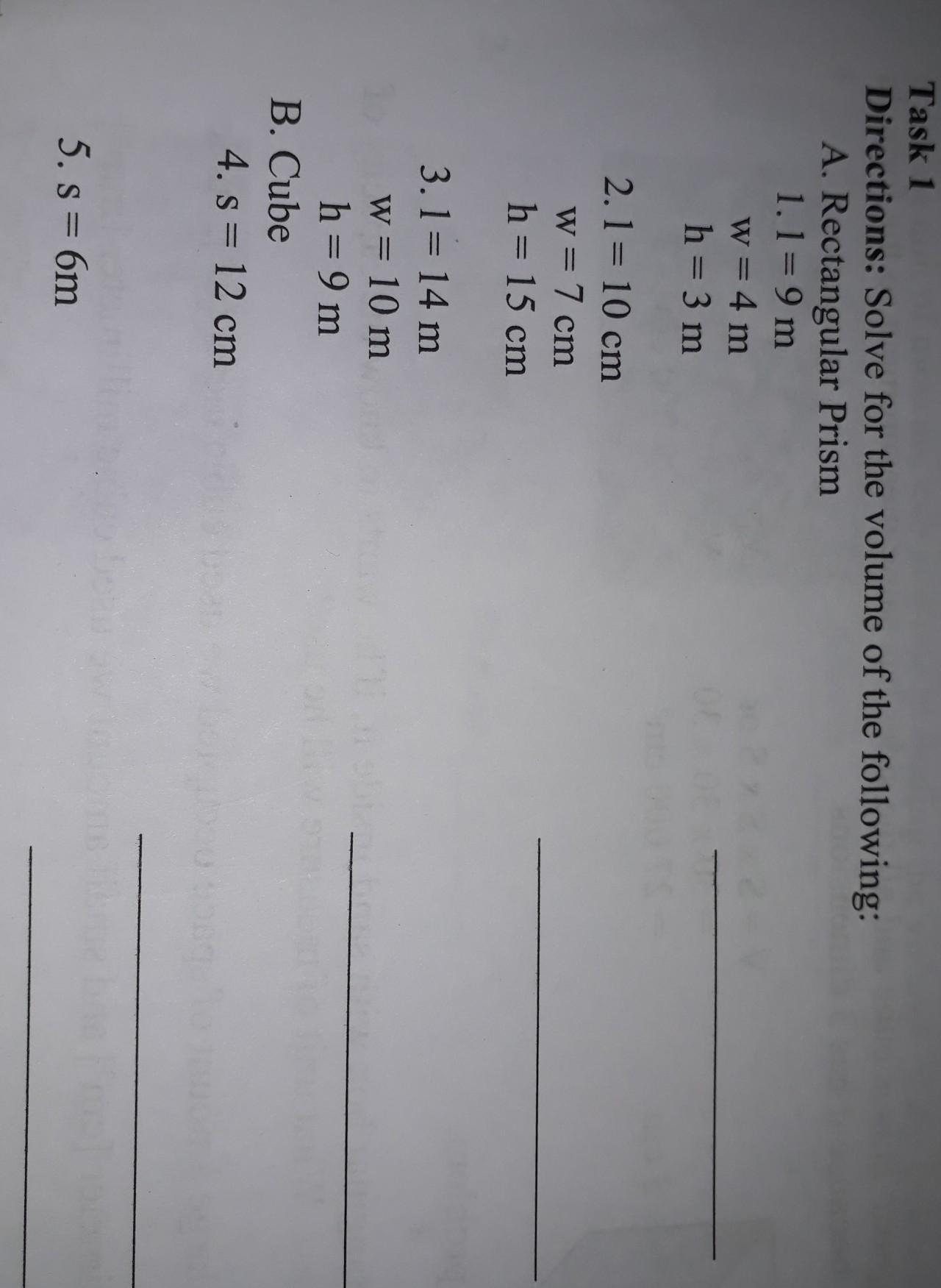 1). Volume of a rectangular prism if the measures of the sides are,