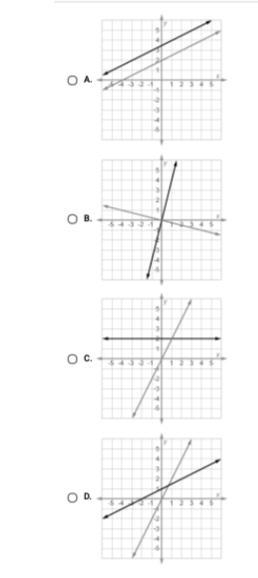Your first line goes through the <u>very center</u>, and is a <u>positive slope</u> therefore it only goes through two quadrants the first and the third your second line is on a <u>negative y axis</u> but since it still has a <u>positive slope</u> it goes through quadrants 1,3,4