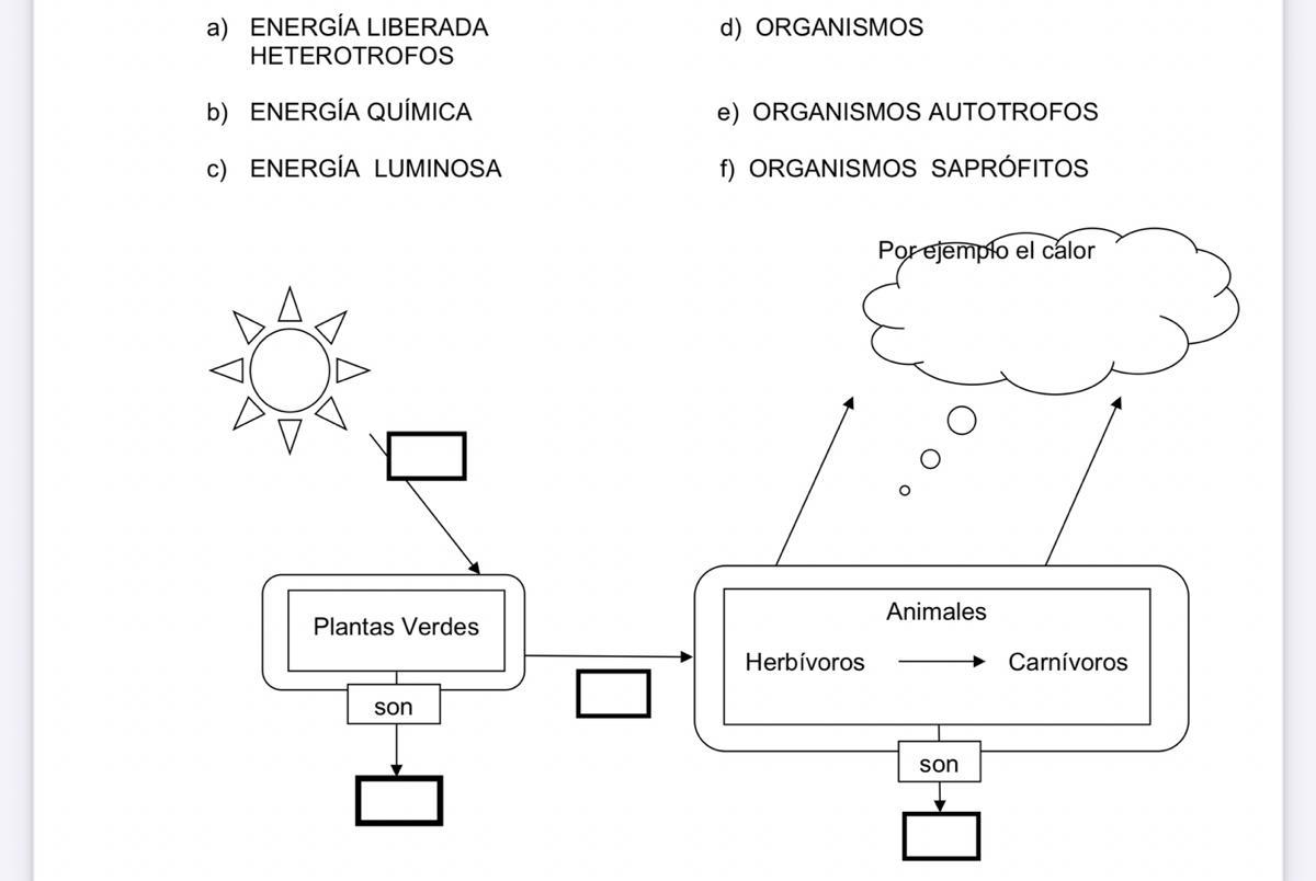 las flechas cerca los animales- energía liberada heterotrofos y organismos saprófitos