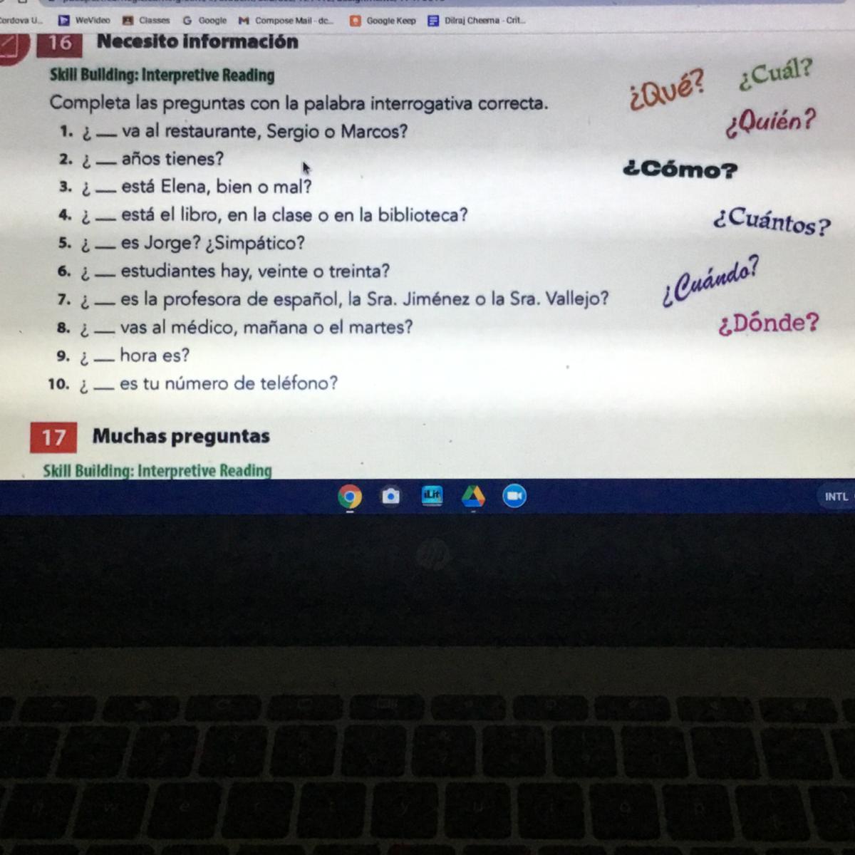 1. nos 2. me 3. les 4. te 5. nos