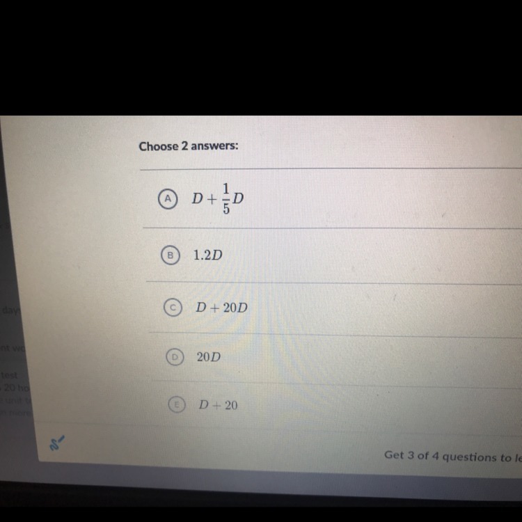 That means there are a total of \greenD{20\% \cdot D} + \maroonD{D}20%⋅D+Dstart color greenD, 20, percent, dot, D, end color greenD, plus, start color maroonD, D, end color maroonD dishes on the new menu.