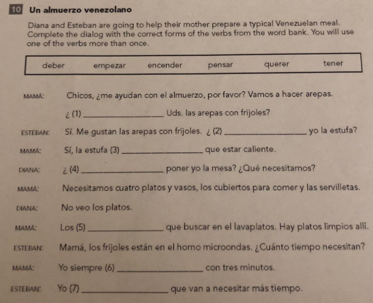 Nosotros <u>comemos</u> el almuerzo en la cafetería. Alonso <u>come</u> ensaladas y yo <u>como</u> bocadillos. Después de las clases vamos a un café. Yo <u>veo</u> al mesero en el café. Yo <u>leo</u> el menú y doy la orden al mesero. El mesero <u>escribe</u> la orden.