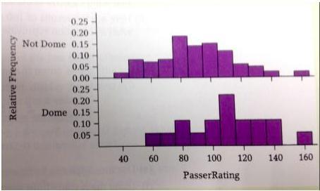 c) Manning’s mean passer rating in domes was 109.3 and his mean passer rating outside was 89.8, for a difference (dome – outside) of 19.5. Describe how to simulate the distribution of this test statistic, assuming that Manning’s ability is the same in both locations.