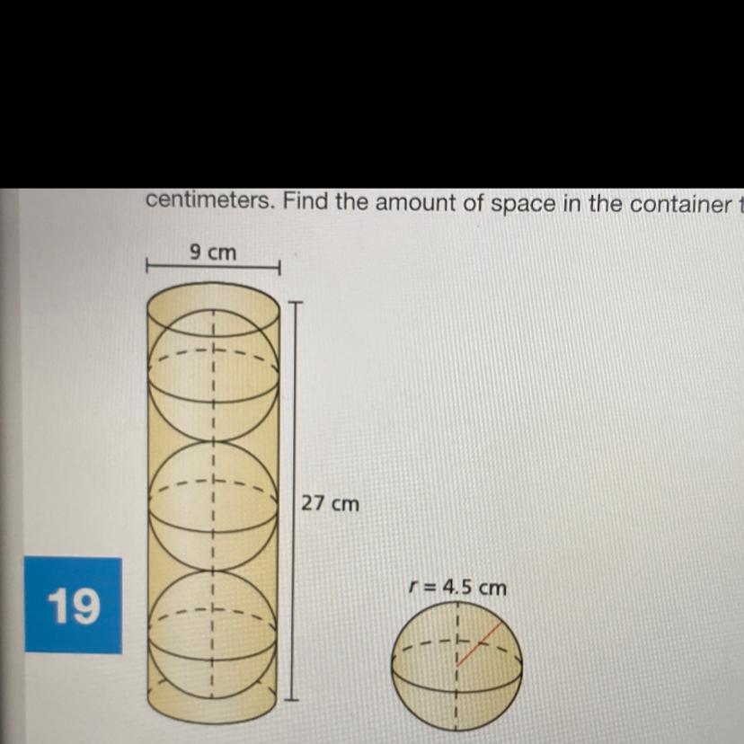 Volume of space in cylinder = [(3.14)(20.25)(27)] - [(4)(3.14)(91.125)]