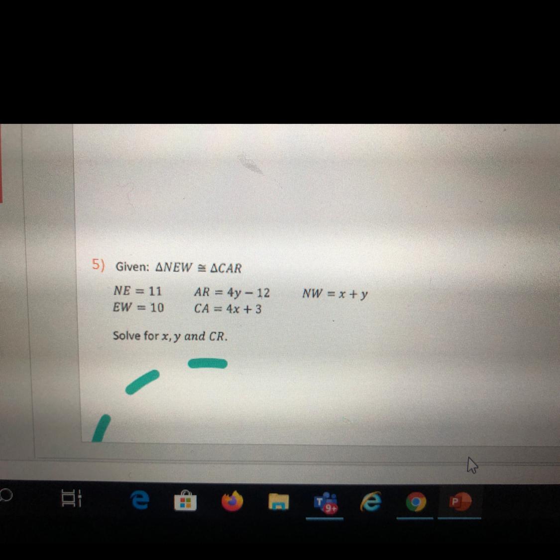Since the triangles are congruent then corresponding sides are congruent, then