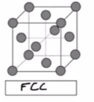 A face centered cubic arrangements (FCC) is an atom arrangement located in nature. FCC structural unit cell is made up of atoms organized in a cube with fraction of an atom in each corner and six additional whole atoms in the middle of the cube face.